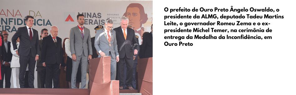 O ex-presidente Michel Temer falou sobre a honraria: “Essa solenidade é tão preciosa e significativa porque ultrapassa Ouro Preto e Minas Gerais