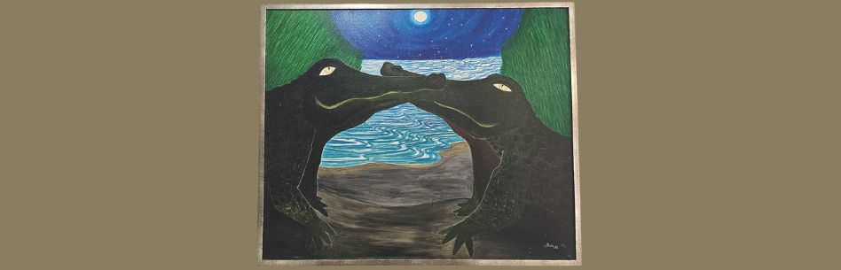 seres ancestrais, criativos e equivalentes. Jacarés sorvendo goles de luar no